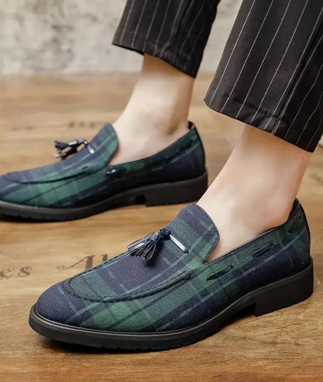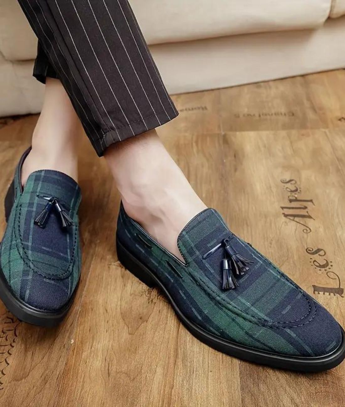 Mocassins À Gland À Carreaux Bleu Et Vert Pour Homme : l’atout de votre garde-robe