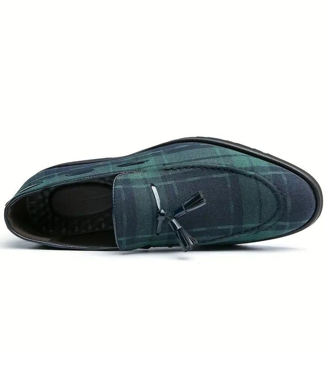 Mocassins À Gland À Carreaux Bleu Et Vert Pour Homme : un style impeccable